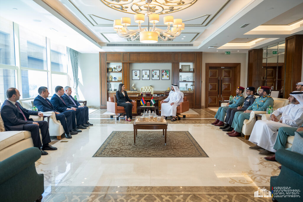 Ողջունելով Արփինե Սարգսյանին՝ Արաբական Միացյալ Էմիրությունների ներքին գործերի նախարարը բարձր է գնահատել երկու պետությունների միջև ձևավորված գործընկերային հարաբերություններն ու ընդգծել, որ առկա են երկու գերատեսչությունների միջև համագործակցությունն առավել սերտացնելու և զարգացնելու հեռանկարներ։