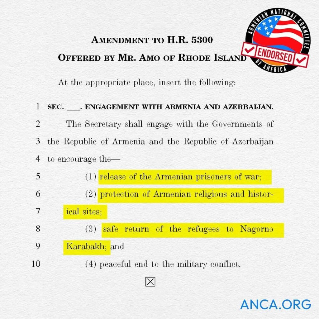 ԱՄՆ պետդեպարտամենտի լիազորման փոփոխությունը պահանջում է ազատել հայ գերիներին 16 Սեպտեմբերի 2025, 20:41 Քաղաքականություն ԱՄՆ Պետդեպարտամենտի լիազորման փոփոխությունը՝ Կոնգրեսական Գեյբ Ամոյի նախաձեռնությամբ, պահանջում է ազատել հայ գերիներին և ապահովել Արցախի փախստականների վերադարձը։ Այս մասին հայտնել է Հայ Դատի Ամերիկայի հանձնախումբը։