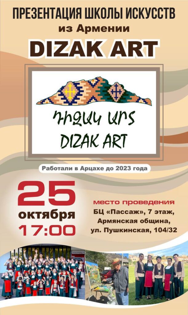 Հոկտեմբերի 25-ին Դոնի Ռոստովում տեղի կունենա «Դիզակ արտ» կրթամշակութային և երիտասարդական կենտրոնի շնորհանդեսը, որը հիմնադրվել է ի պատիվ Արցախի Հադրութի շրջանի պատմական անվան։ Կենտրոնը ստեղծվել է Արցախում 44-օրյա պատերազմի ավարտից կես տարի անց։ Հիմնադիրներն են Երազիկ Հայրիյանը, Լիաննա Պետրոսյանն ու Գայանե Բուդաղյանը, որոնք Արցախի բնագաղթումից հետո տեղափոխվել են Հայաստան և իրենց գործությունեությունը շարունակում են այնտեղ։