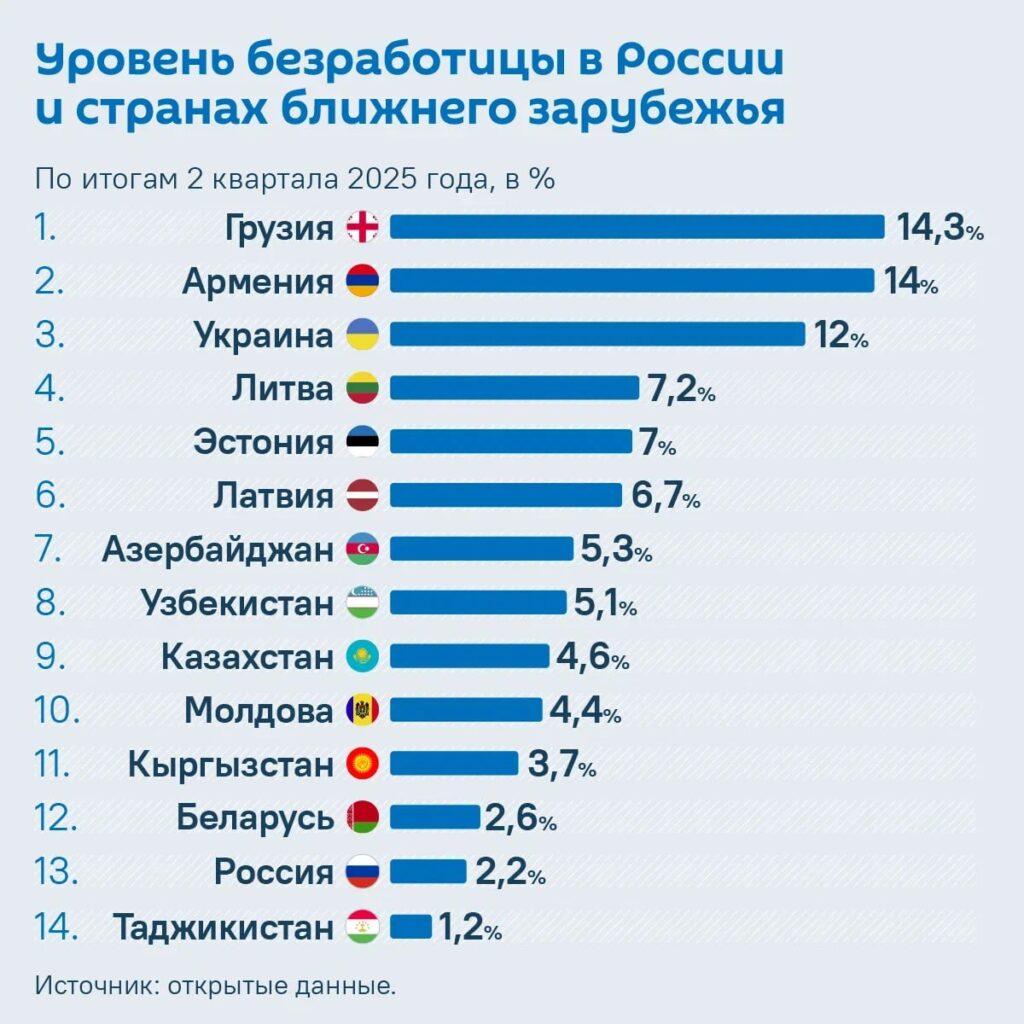 Meanwhile, the lowest unemployment rates were observed in Russia, Belarus, and Tajikistan, where the figures have remained consistently low.