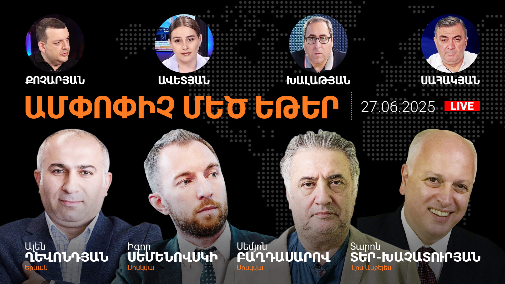 June 27 2025, 21:00 NSS raid on Mother See of Holy Etchmiadzin. Pashinyan’s real goal. Scenarios for saving situation. Alpha Newsroom 06/27/2025 Today in Alpha Newsroom: 🔹The Armenia faction joins the vote of no confidence initiative by nominating Archbishop Mikayel Ajapahyan 🔹The NSS raid on…