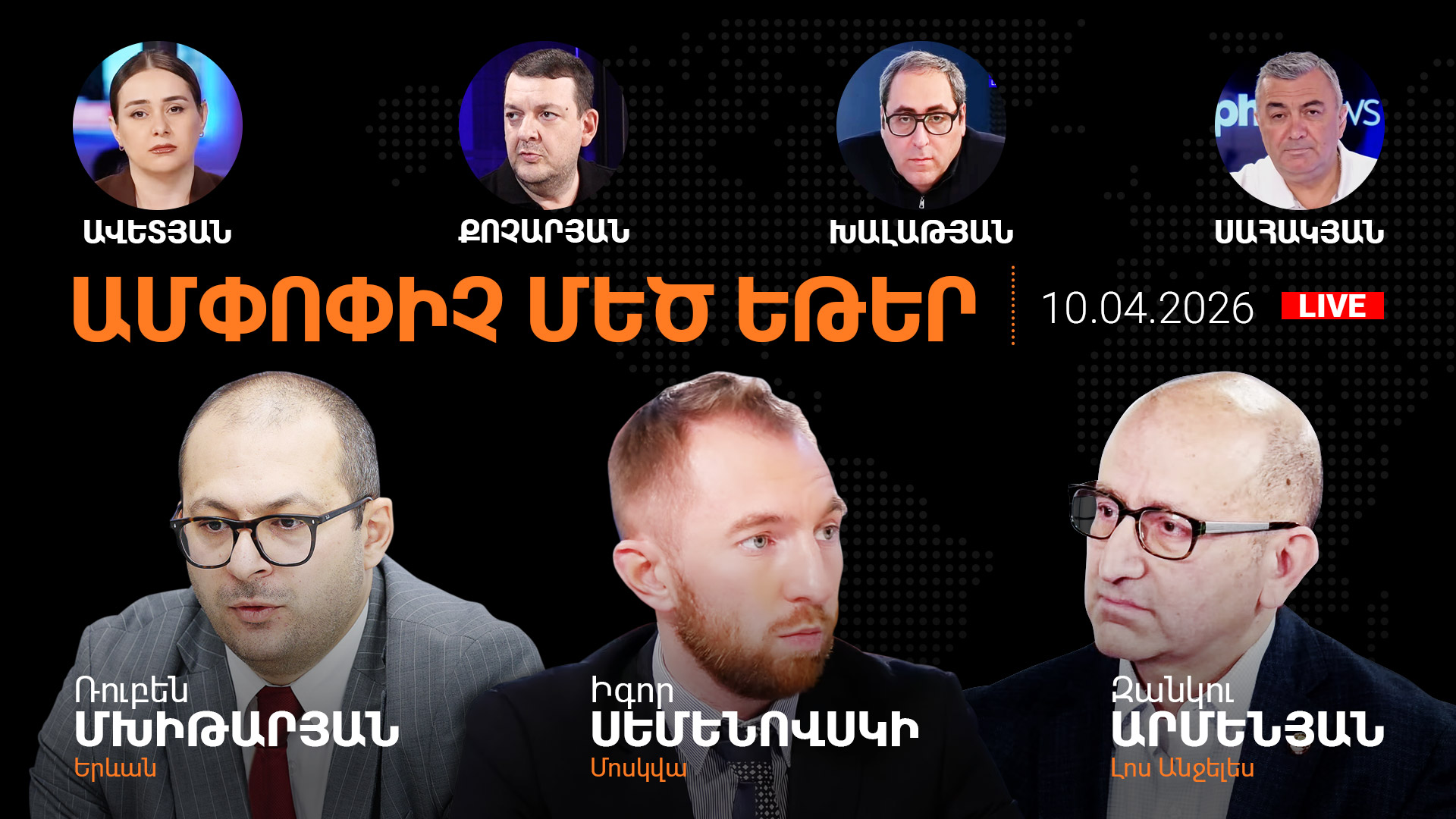 April 10 2026, 21:00 Pashinyan’s third partner in Syunik. Under Baku’s table and behind it. The diaspora – at the center of the target. Alpha Newsroom 10.04.2026 Today in of Alpha News Room: The 34th anniversary of the Maragha massacre: Armenia's MFA statement on systemic hatred and ongoing impunity for…