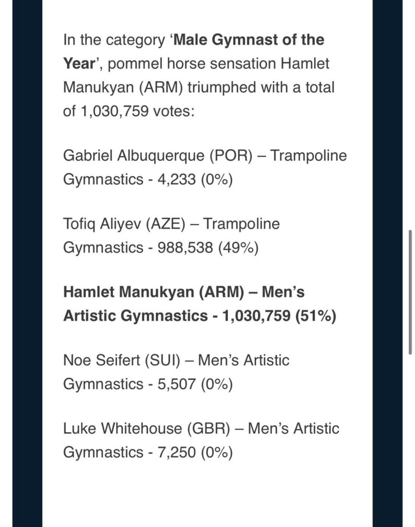 Տարվա լավագույն մարմնամարզիկի մրցանակին հավակնում էր 5 մարզիկ, վերջին օրերում ակտիվ քվեարկություն էր ընթանում: