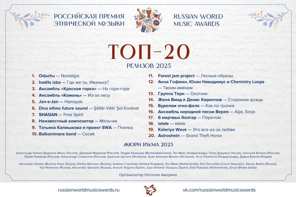 Հայկական «JAN-e-JAN» ֆոլք խումբը, ըստ «Russian World Music Awards»-ի, հայտնվել է 2025 թվականի լավագույն հինգ ռելիզների ցանկում։