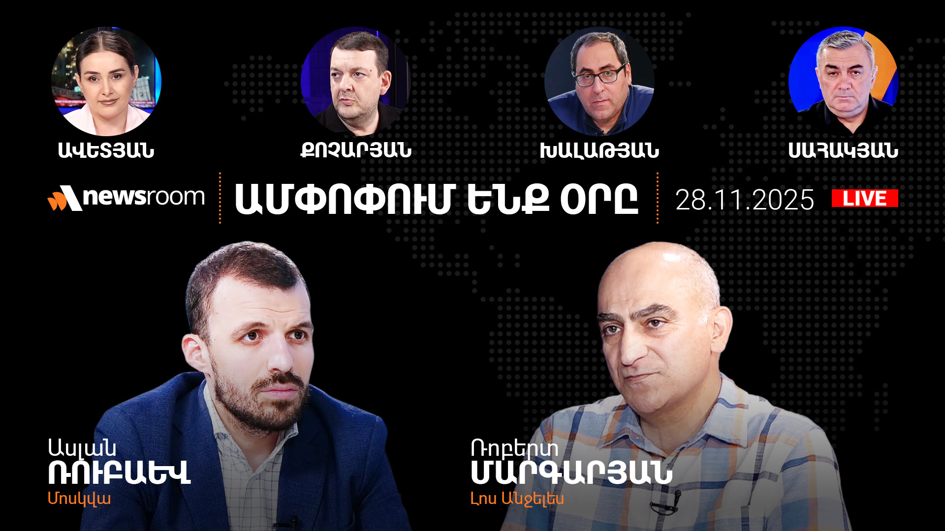 25 Նոյեմբերի 2025, 21:00 ՀՀ-ի և Ադրբեջանի միջև իրավիճակը բարելավվե՞լ է. Փաշինյանի «մենահամերգի» արդյունքները. Alpha Newsroom 25.11.2025 Alpha Newsroom-ի այսօրվա թողարկմանը՝ Ջնջվել է ՀԷՑ-ի 2018-2024թթ ամբողջ տվյալների բազան և դա թաքցվել է. Ինչո՞ւ է թաքցվել. Ռոմանոս Պետրոսյան Նարեկ Կարապետյանի արձագանքը՝…