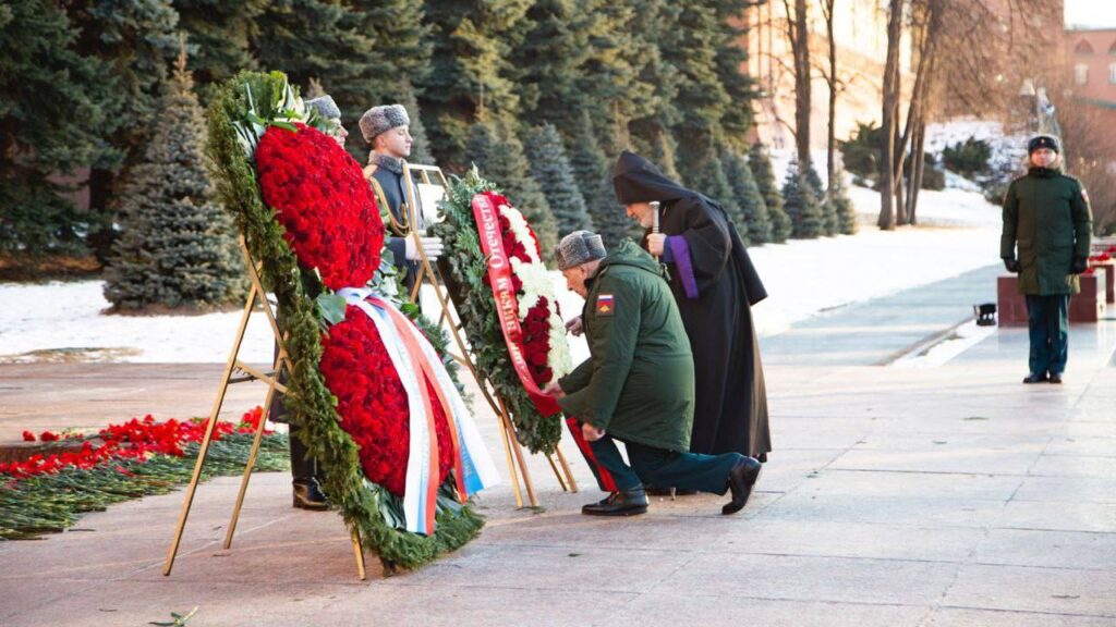 Հայ Առաքելական Եկեղեցու (ՀԱԵ) Ռուսաստանի և Նոր Նախիջևանի թեմի առաջնորդ Եզրաս արքեպիսկոպոս Ներսիսյանի և լեգենդար զորավար, գեներալ-լեյտենանտ Նորատ Տեր-Գրիգորյանցի գլխավորությամբ, եկեղեցու հոգևորականները, ծխականները, զինվորականները, վետերանները, գիտության և կրթության ներկայացուցիչները ծաղիկներ են խոնարհել Կրեմլի պատի մոտ՝ Անհայտ զինվորի գերեզմանին և մեկ րոպե լռությամբ հարգել զոհերի հիշատակը։