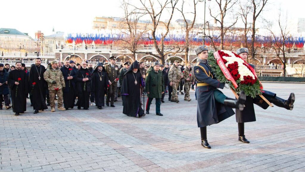 Под предводительством главы Российской и Ново-Нахичеванской епархии Армянской Апостольской Православной Церкви архиепископа Езраса Нерсисяна и легендарного военачальника, генерал-лейтенант Нората Тер-Григорьянца священнослужители и прихожане Церкви, военнослужащие, ветераны боевых действий и офицеры запаса России и Армении, участники СВО, общественные деятели, представители науки, культуры, образования, бизнеса, СМИ, общественных объединений и молодежи возложили цветы к Могиле Неизвестного солдата у Кремлевской стены, почтив минутой молчания память погибших.