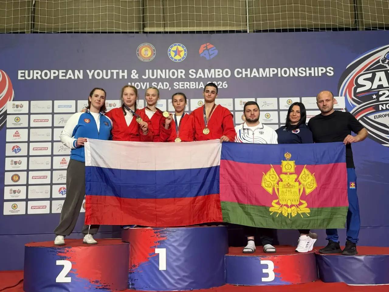 Артур Григорян стал победителем первенства Европы 2026 по самбо в Сербии 22 апреля 2026, 12:40 Спорт Кубанский спортсмен Артур Григорян завоевал золото первенства Европы 2026 по самбо в сербском городе Нови-Сад, которое проходит с 19 по 24 апреля. Об этом сообщает Всероссийская федерация самбо.