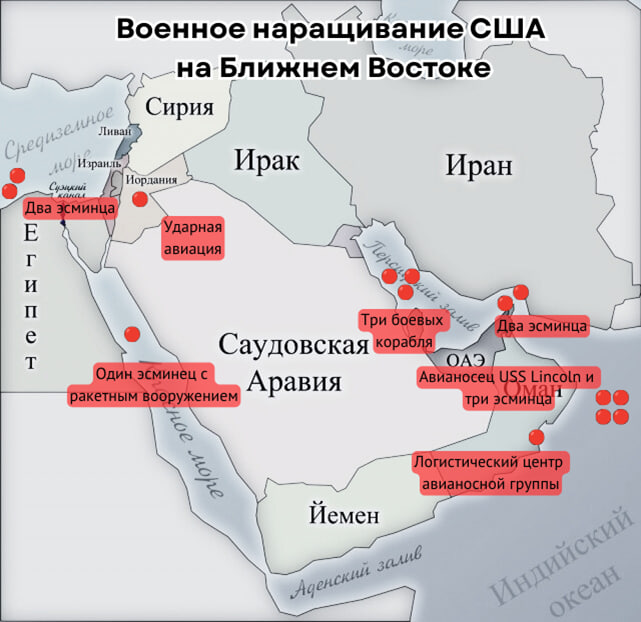 Источник: The New York Times, “Trump, Iran and the Expanding U.S. Military Presencе”,