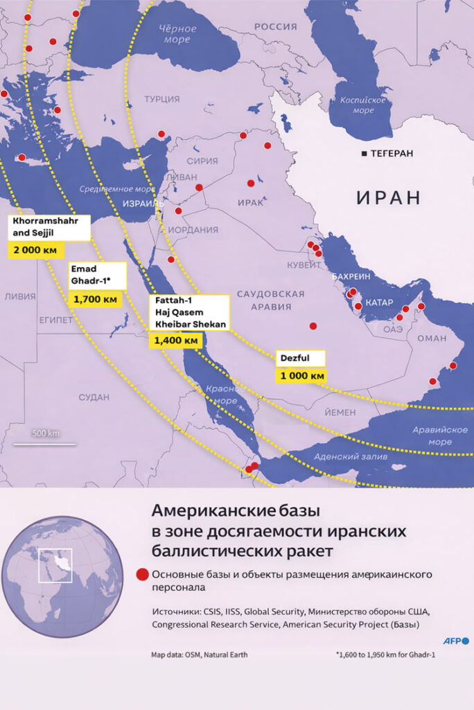 Ответные шаги Тегерана могут включать не только активизацию прокси-сил — «Хезболлы», шиитских формирований в Ираке и Сирии, хуситов в Йемене — но и прямое применение баллистических ракет. Значительная часть американских военных объектов в регионе находится в зоне досягаемости иранских ракет средней дальности. Это создаёт реальный риск эскалации даже при ограниченном ударе со стороны США.