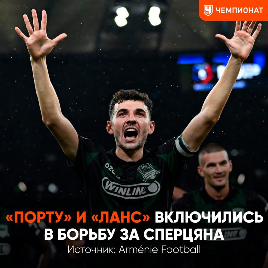 Интерес к полузащитнику «Краснодара» Эдуарду Сперцяну продолжает расти. Как сообщает Arménie Football, сразу два европейских клуба – португальский «Порту» и французский «Ланс» – выразили готовность приобрести игрока.
