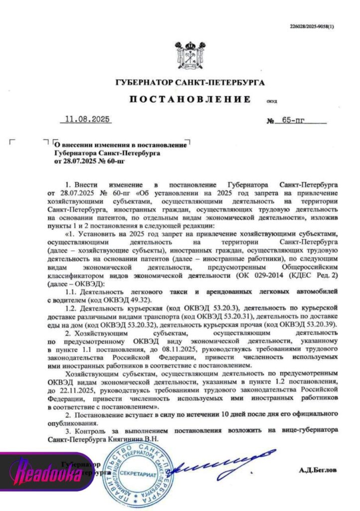 Власти Санкт-Петербурга ввели запрет на работу мигрантов в доставке. Соответствующее постановление подписал губернатор Беглов. Компаниям дадут три месяца для «корректировки кадровой политики».