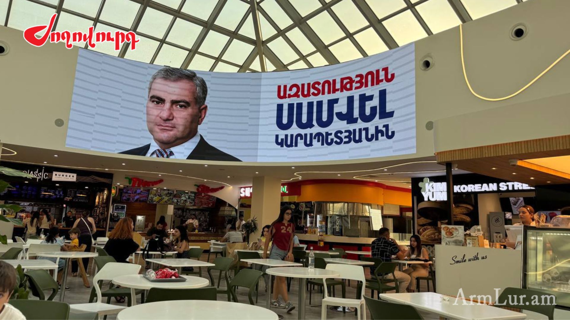 В торговом центре «Далма Гарден Молл» сторонники мецената и предпринимателя Самвела Карапетяна развесили плакаты с надписью «Свободу Самвелу Карапетяну».