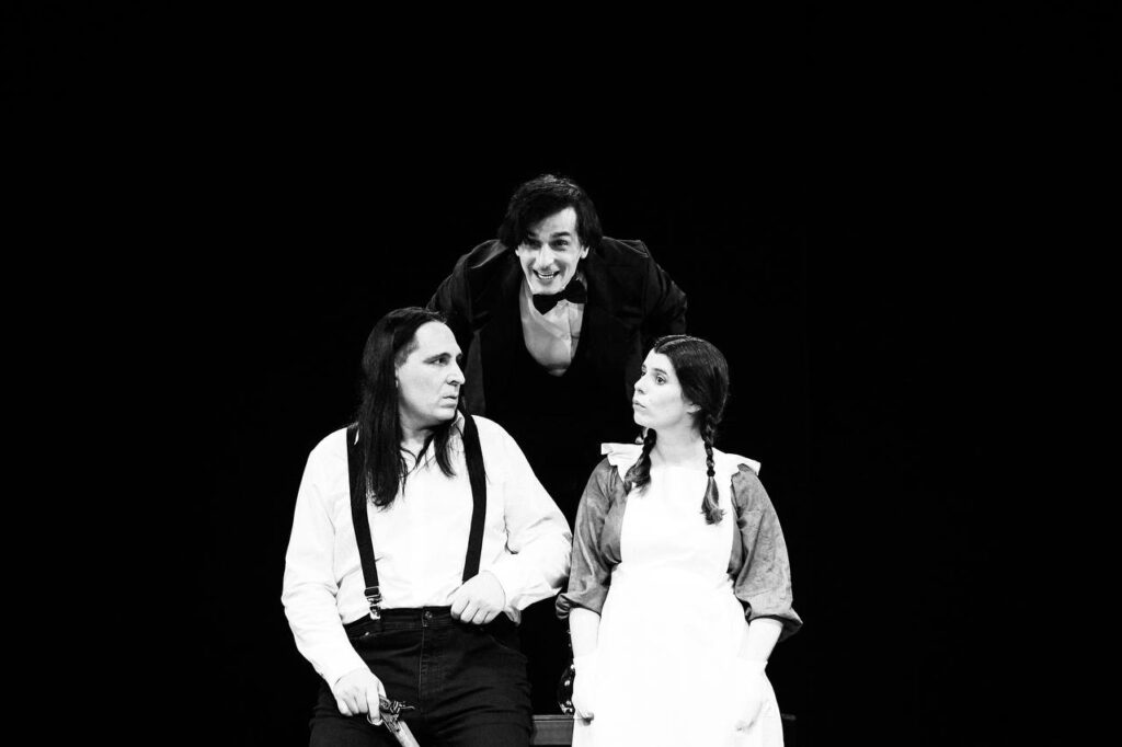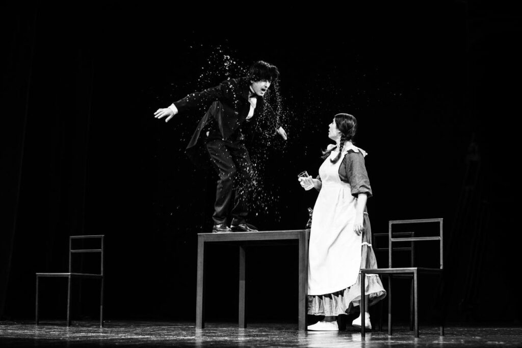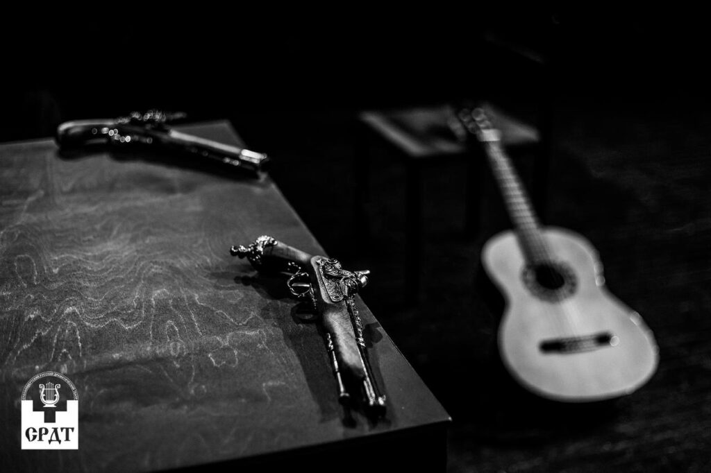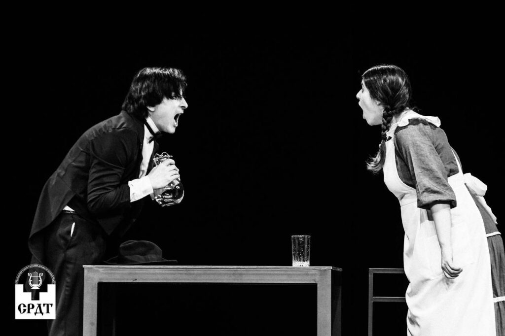Лаконичное сценическое пространство и сосредоточенность на актёрской игре подчёркивают ритм чеховской комедии, где драматическое напряжение рождается из диалога, жеста и столкновения характеров.