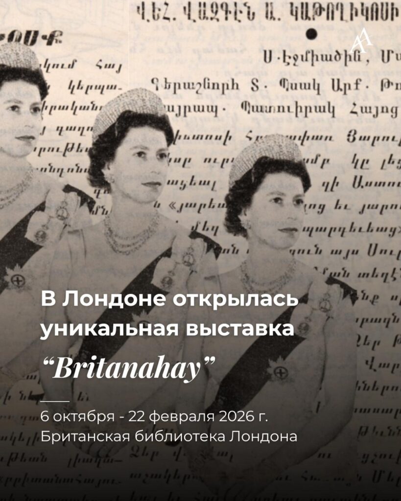 В Британской библиотеке Лондона открылась выставка «Britanahay: Armenian & British», которая будет доступна для посетителей с 6 октября по 22 февраля 2026 года.