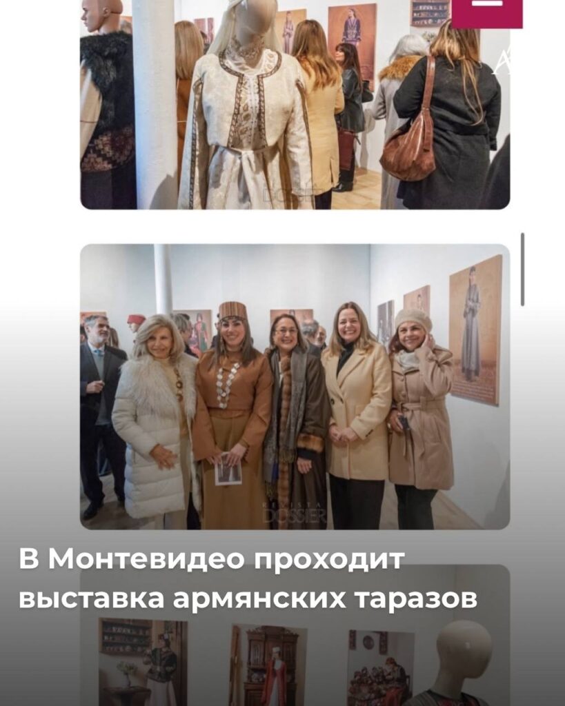В Монтевидео, в здании посольства Армении в Уругвае, открылась выставка, посвященная армянским национальным костюмам – таразам. Посетители могут увидеть подлинные образцы традиционной одежды, а также эксклюзивные фотографии, запечатлевшие ее детали и красоту.