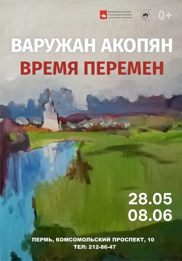 В Центральном выставочном зале Перми 28 мая начнет работу новый выставочный проект «Время перемен» — состоится персональная выставка художника Варужана Акопяна. Об этом сообщается на странице выставочного зала в сети.