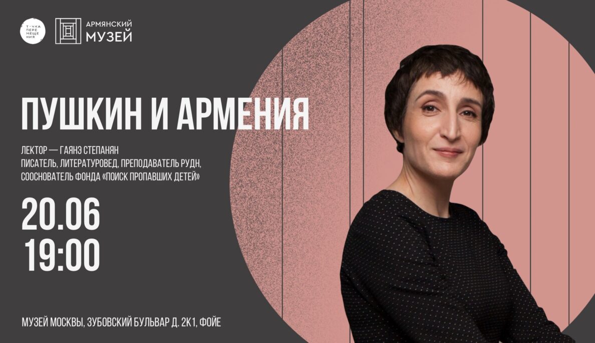 Հունիսի 20-ին Մոսկվայի հայկական թանգարանում գրող, գրականագետ Գայանե Ստեփանյանը հանդես կգա «Պուշկինը և Հայաստանը» խորագրով դասախոսությամբ: Դասախոսության շրջանակներում Ստեփանյանը կքննարկի Ալեքսանդր Պուշկինի ստեղծագործությունների…