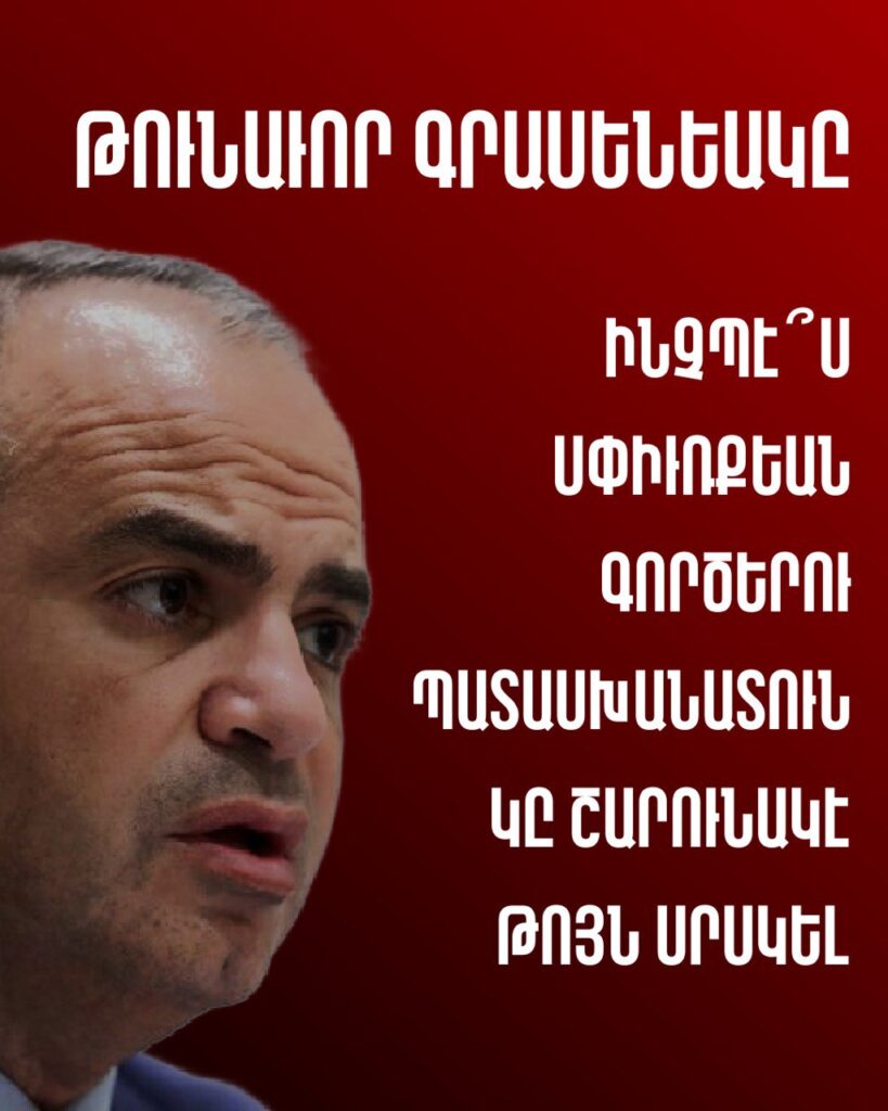 Այն գրասենյակը, որը պետք է զբաղվեր մշակութային ժառանգության պահպանմամբ, Հայոց ցեղասպանության միջազգային ճանաչմամբ և հայրենադարձության խթանմամբ, այսօր՝ Փաշինյանի ղեկավարությամբ և Սինանյանի կամակատարությամբ, վերածվել է պետական բյուջեից սնվող ապատեղեկատվության կենտրոնի։